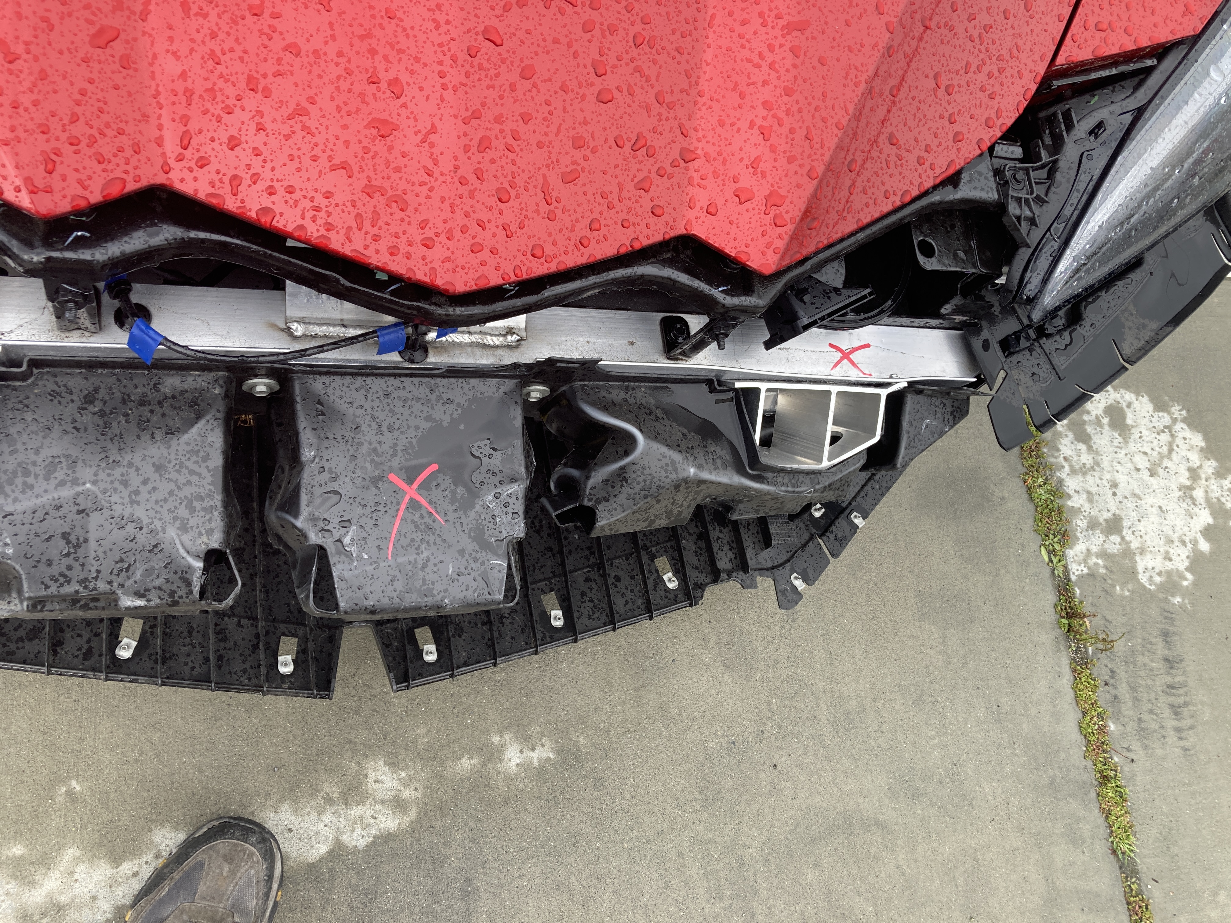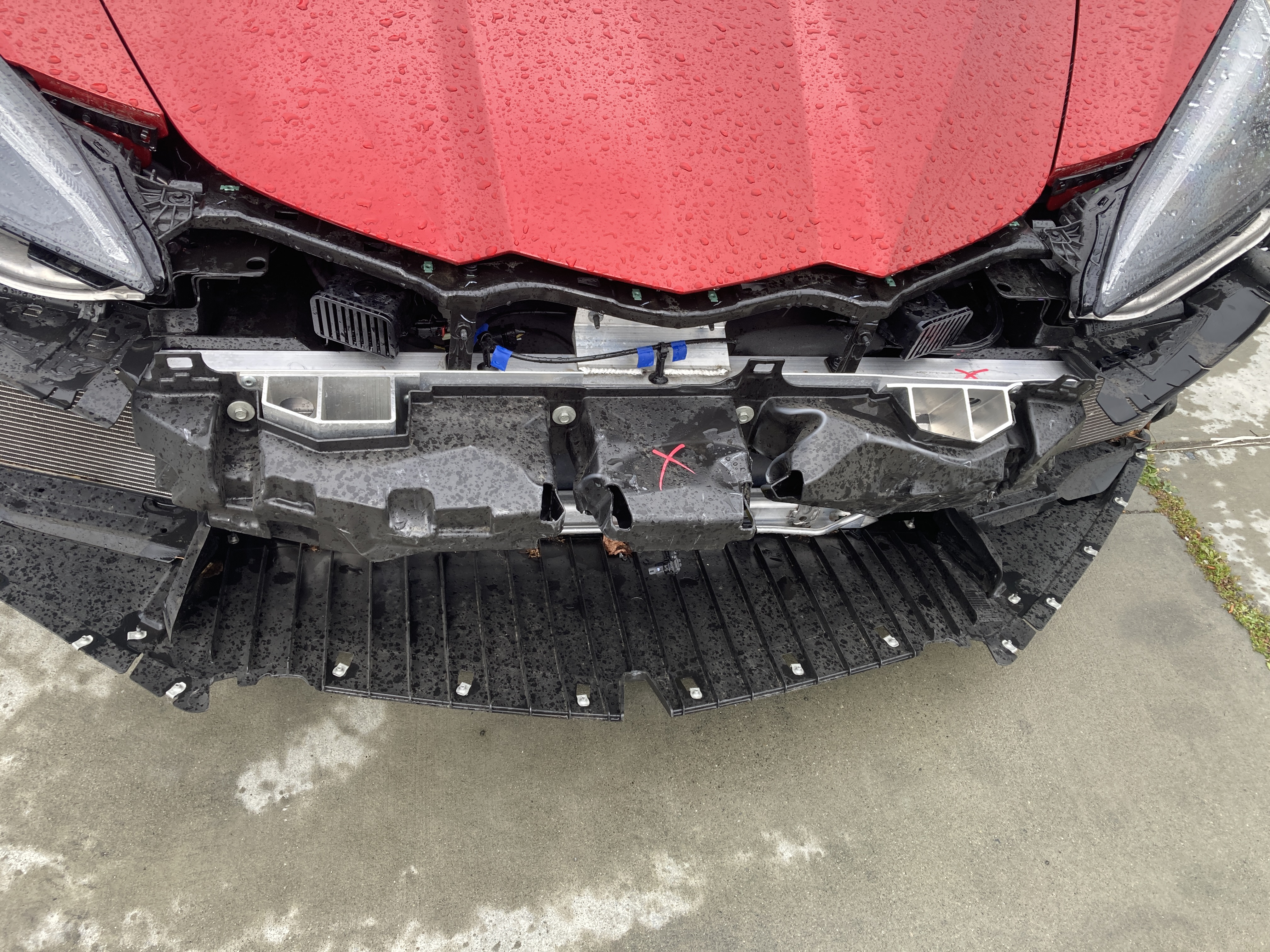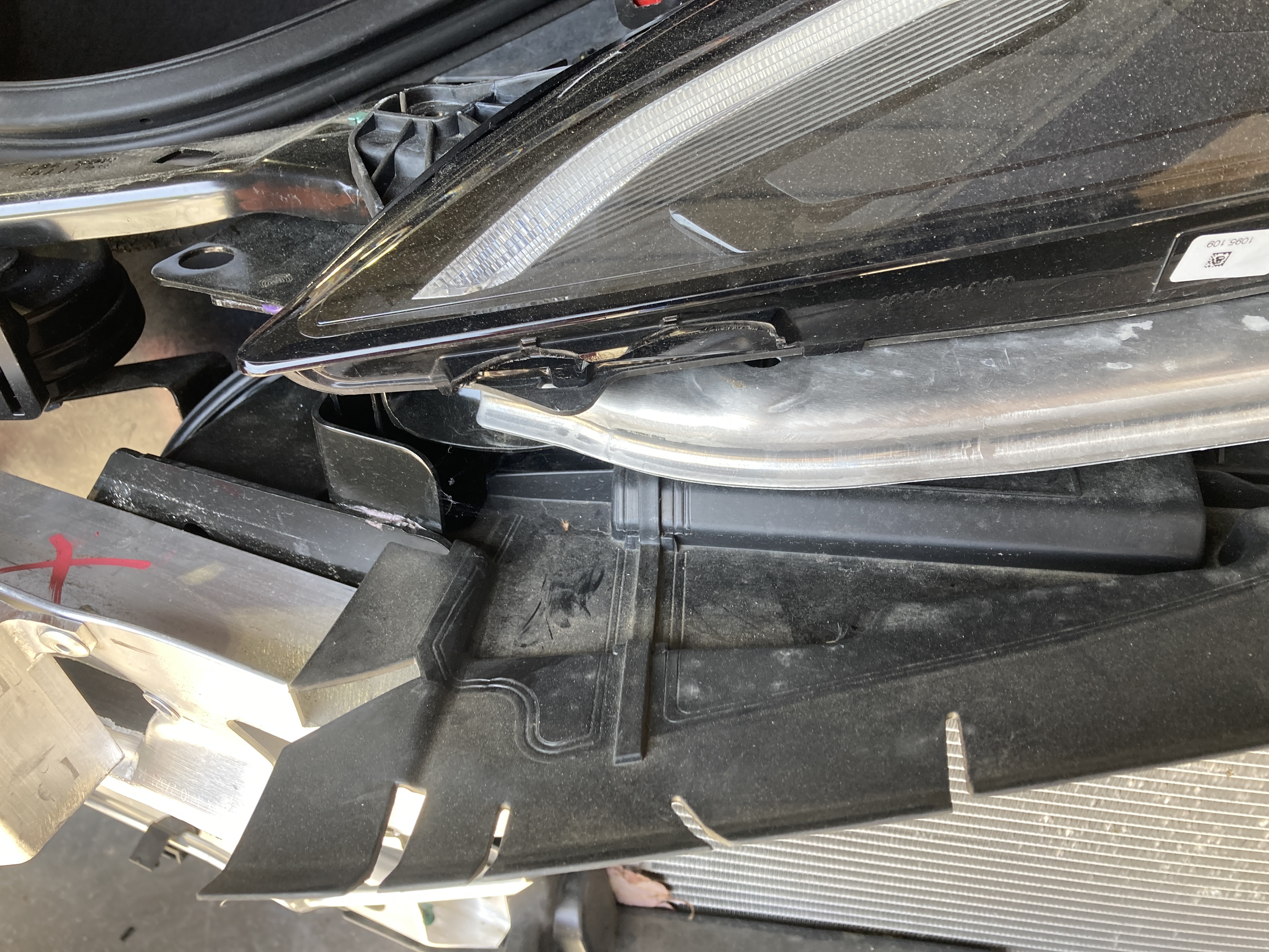 Our team began by carefully removing the bumper cover and the bumper absorber. In modern sports cars, the “absorber” is a critical safety component located behind the visible bumper skin, designed to manage energy during an impact. By removing these components entirely, we were able to inspect the mounting points and ensure that the repair was more than just skin-deep.